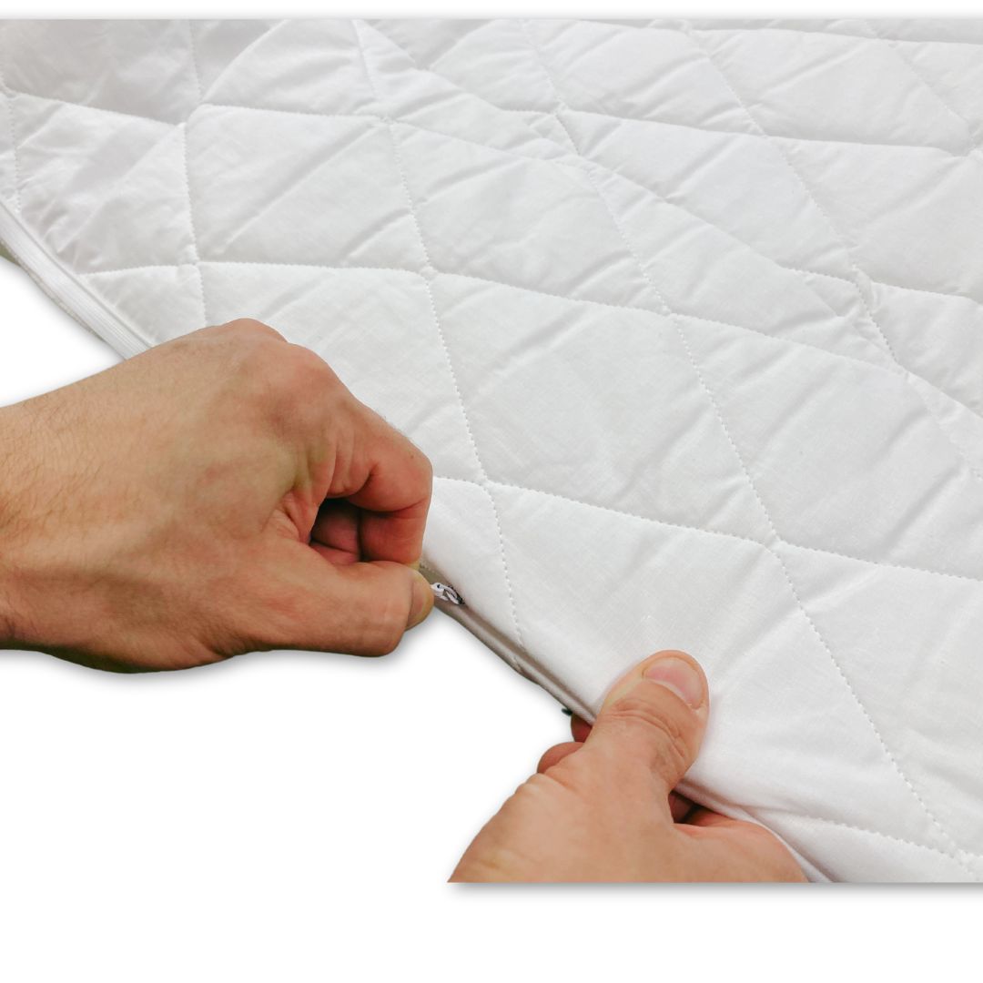 The tech layer arrives inserted inside a quilted polyester zipped cover (washable) specially designed to optimize air circulation, make it feel like a regualr blanket - not feeling the Smart Layer or holes and work with the layer.